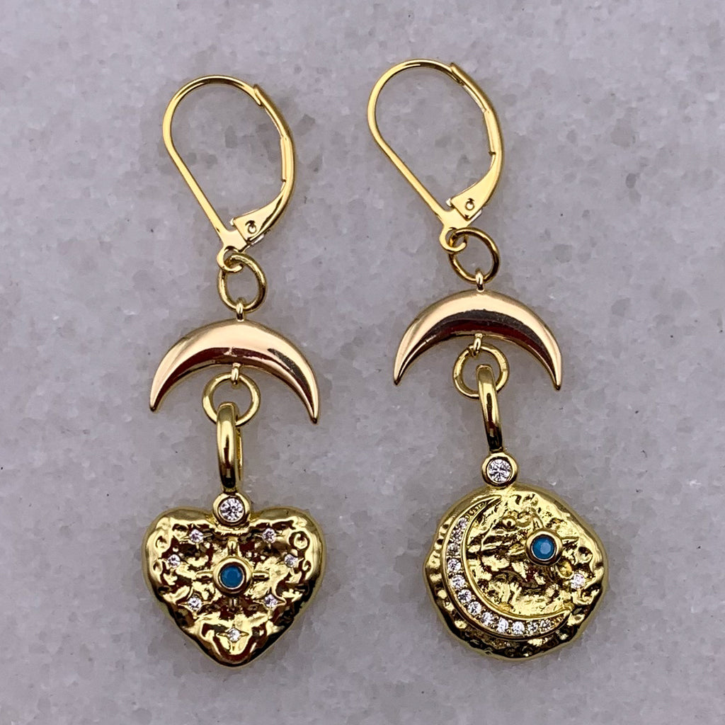 A touch of celestial texture, a sparkle of crystals and a splash of turquoise adds joy to our impeccable Gold-Filled Brave Heart Earrings.