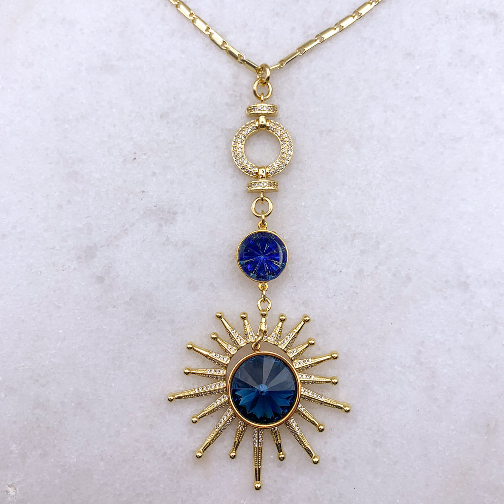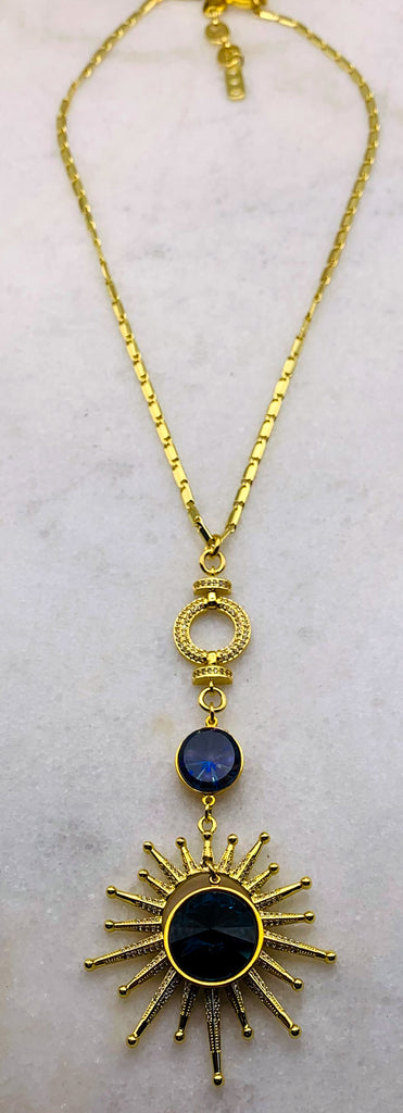 This Statement Making Blue Moon Necklace will add sleek texture to any outfit!