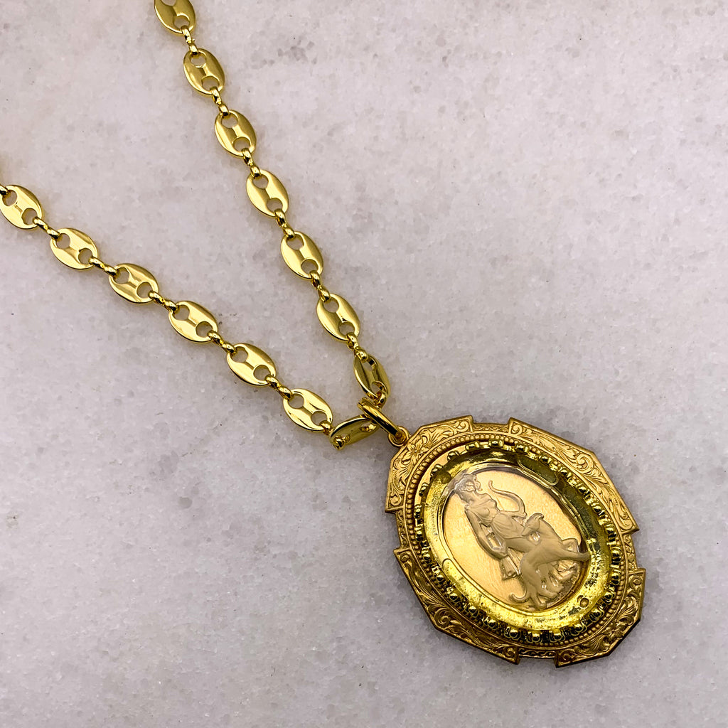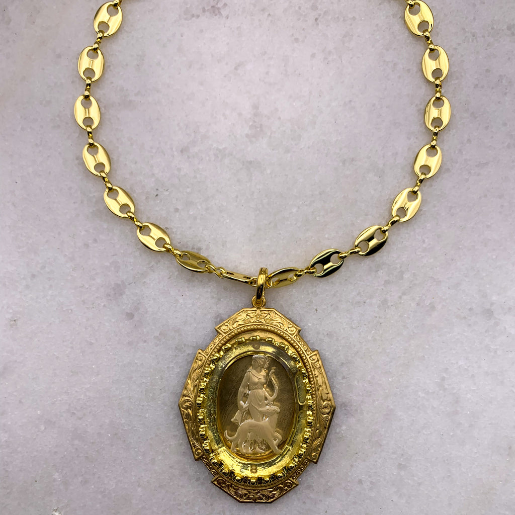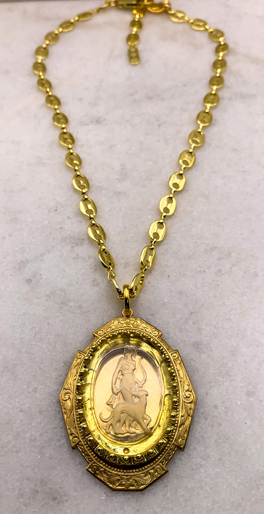 An Amazing Rare and Beautiful Vintage Crystal Carved with an Image of the Goddess Diana is the centrepiece of this Necklace.
