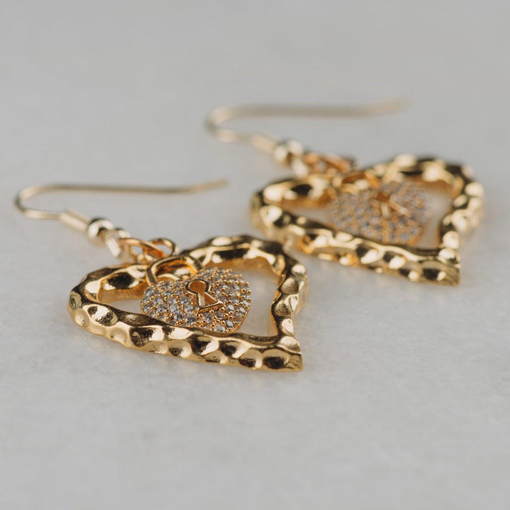 Heart Earrings | Handmade in Australia | Gold Filled | Diamante Heart Lock | Vintage Jewellery