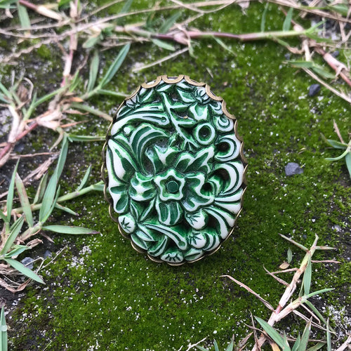 We currently source elements from USA, Czechoslovakia, Austria, Japan, Hong Kong, Australia, France, Belgium, Sweden and Russia. We source elements that were made for jewelers in a vintage era, but never used. In this way the components are both old and new at the same time.
