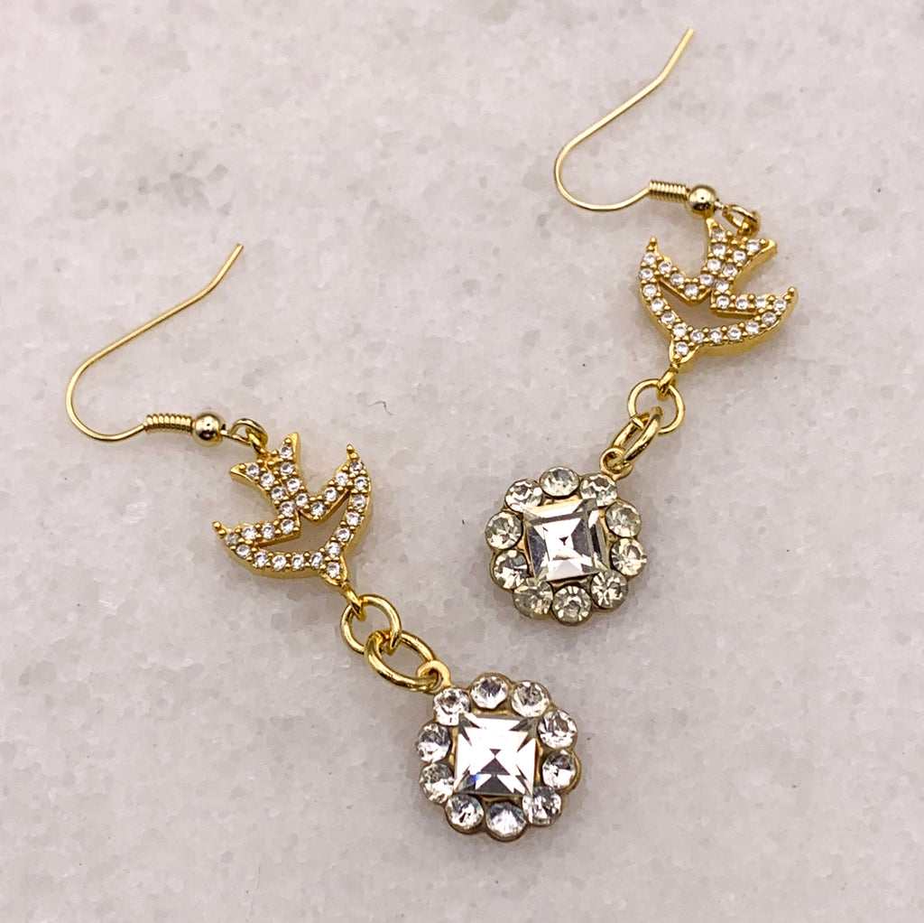 Vintage Style | Crystal Earrings | Handmade in Australia | Bird Jewelry