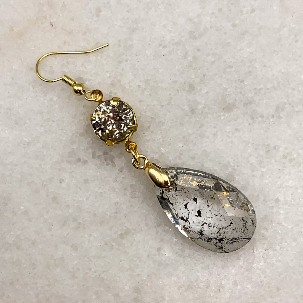 Explore the simple opulence of these beautiful Balenciaga Earrings. Luxurious Vintage Swarovski Cut Crystals that have been splattered with gold in an air of insouciance.