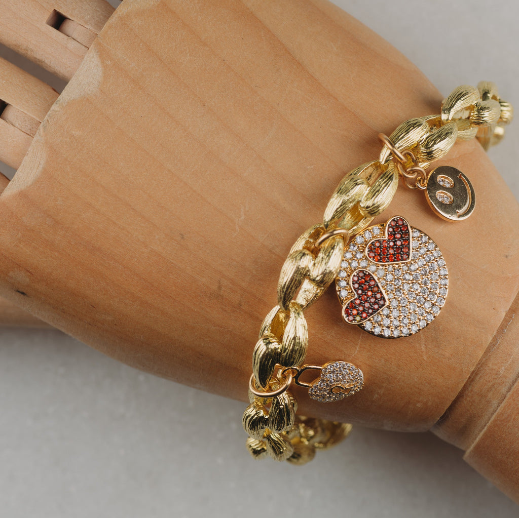 So happy to bring you this fabulous Bracelet which is so much fun, and shines with the diamantes and gold gilt. The smiley face is recognizable worldwide as the symbol of happiness.