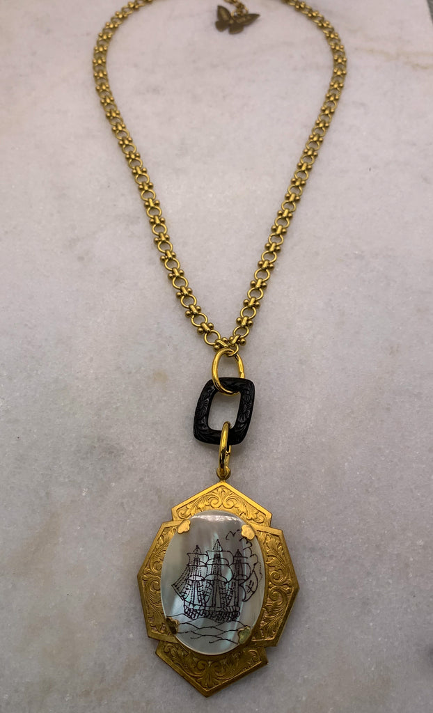 A Wonderful Necklace to Treasure Forever. We are so excited to have found these incredibly beautiful Vintage Scrimshaw or Hand Carved cameos of Iridescent Mother of Pearl.